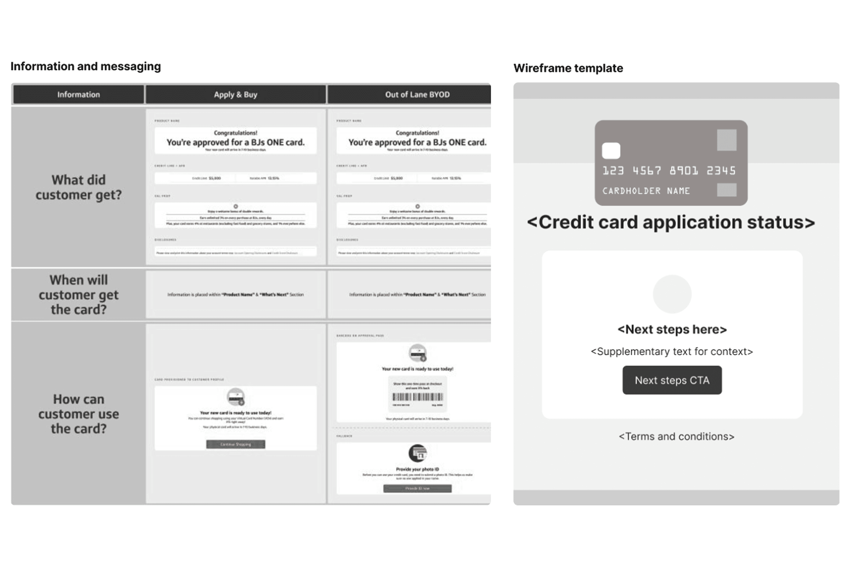 I collaborated with the UX lead to redesign the credit card outcome experiences and was the solo designer on the BJ's Wholesale application flows.