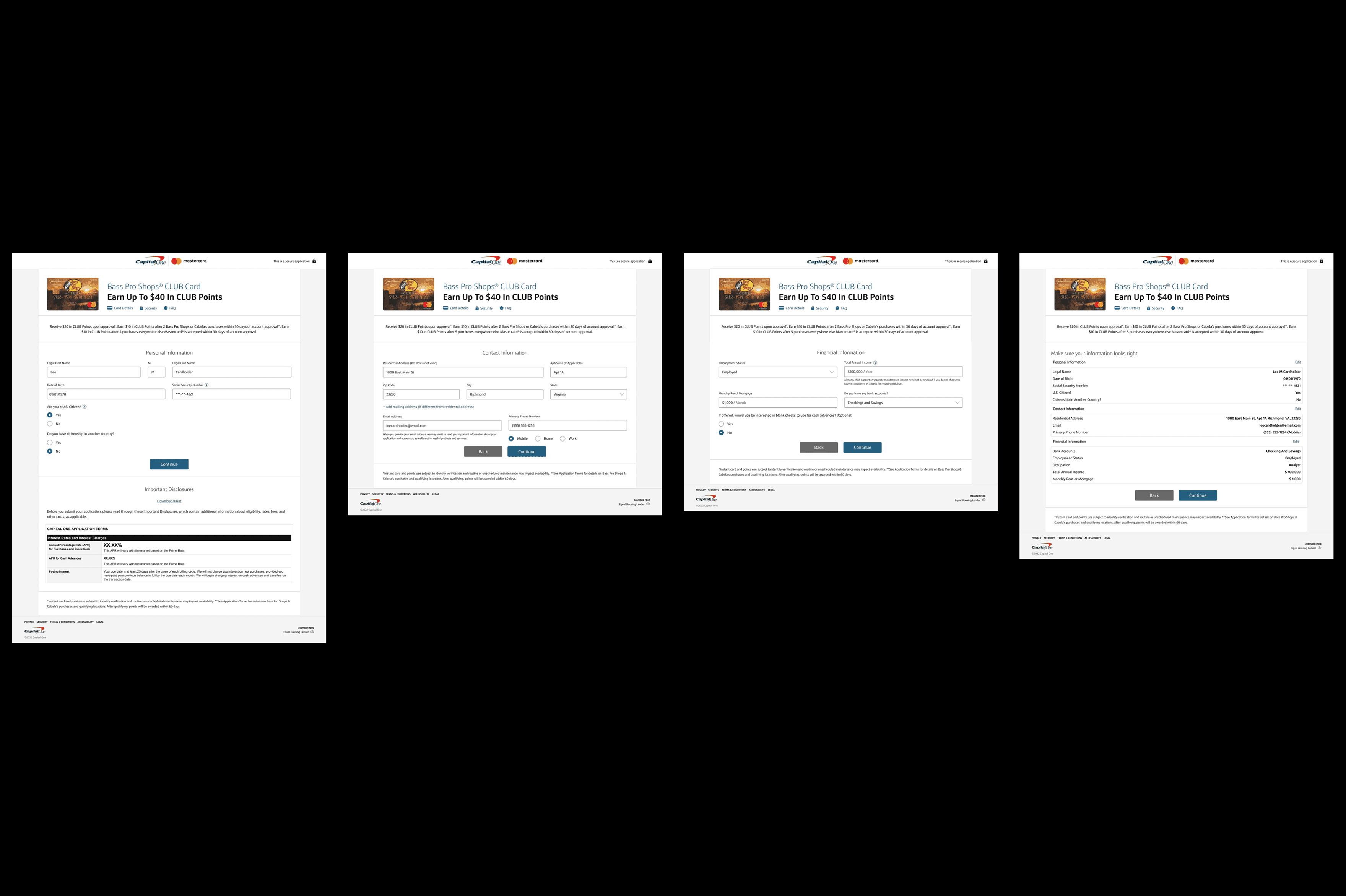 I designed end-to-end workflows for retail credit card applications including Bass Pro CLUB Card, BJ’s One Card, Saks Fifth Avenue Store Card, and Menards BIG card using reusable components. Developed multiple benefit variants and tested them with customers to identify which had the greatest influence and impact.
