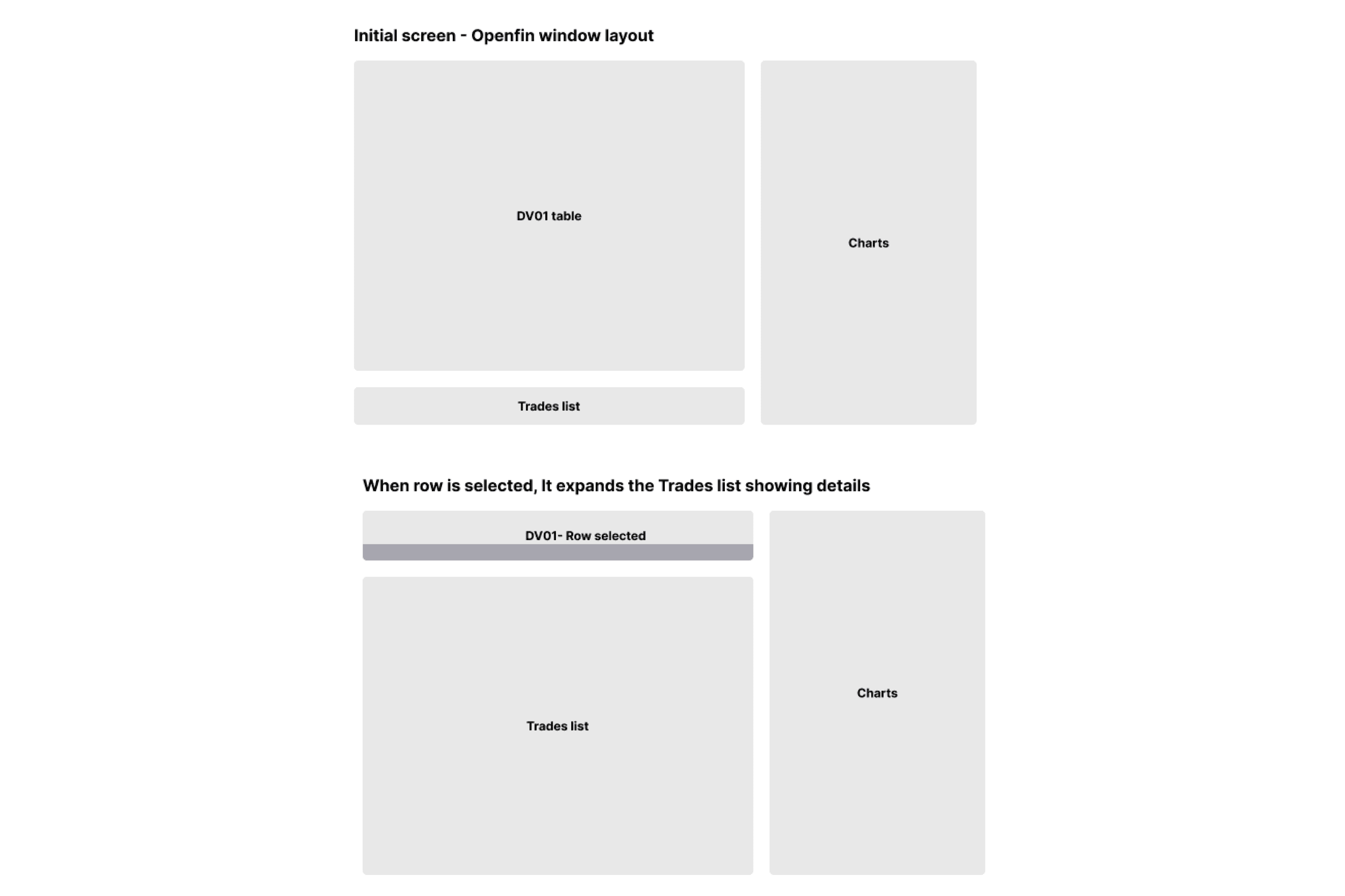 Low-fidelity design for DV01 dashboard layout and interactions