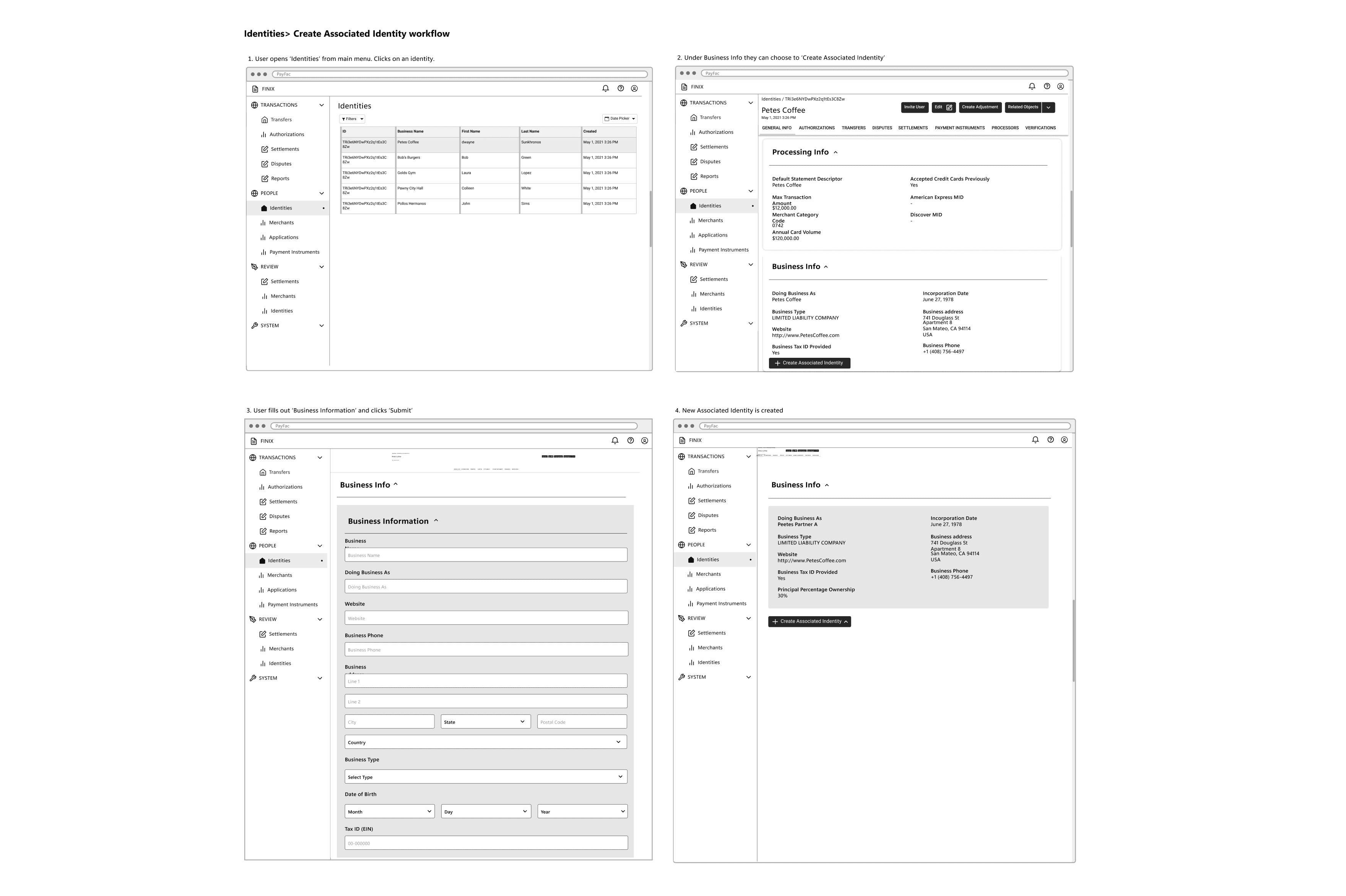 Create merchant identity wireframe